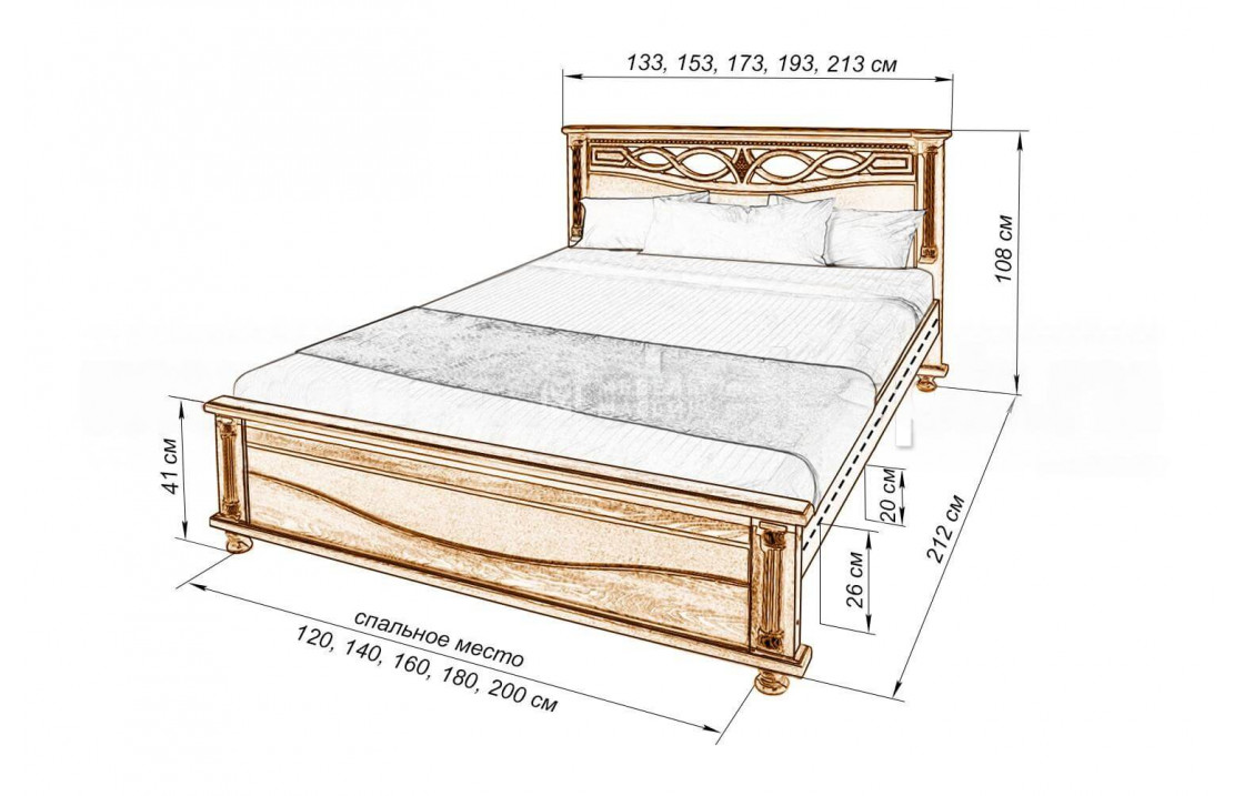 Оригинальная кровать Мелиса из берёзы отличается узорчатым изголовьем и низким изножьем. Модель, которую можно купить по выгодной цене в нашем интернет-магазине, оснащена аккуратными ножками для защиты напольного покрытия, а также обработана специальным лаком для увеличения срока службы изделия. Осуществляется доставка на дом по Вологде и Вологодской области.| Размер | Цена | |